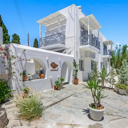 Ammoudi Hotel Páros tilbyder 24 timers security og rideture som ligger 750 minutter fra Ekatontapyliani-kirken. Beliggende ved Paros Arkæologiske Museum, tilbyder stedet 8 værelser samt et tyrkisk bad, et behandlingsrum og et solarium.